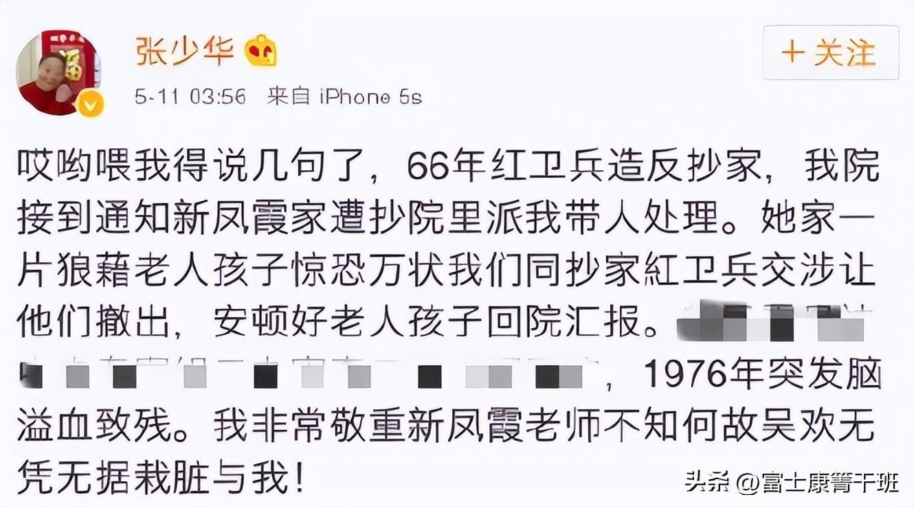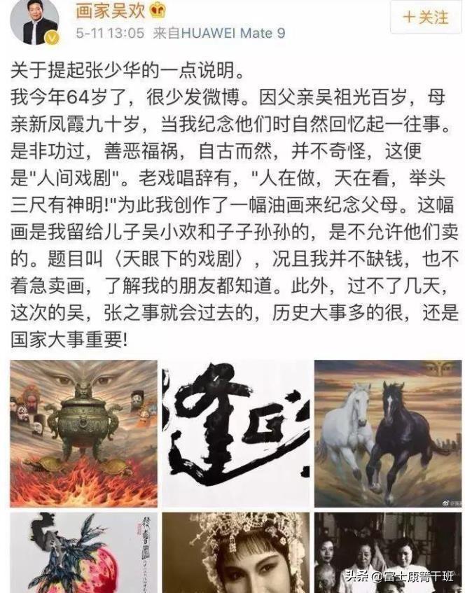 事情的起因是在2017年,新凤霞的儿子画家吴欢,在自己的社交平台上,发了一篇主题为“张少华还记得那些往事么?”的短文。