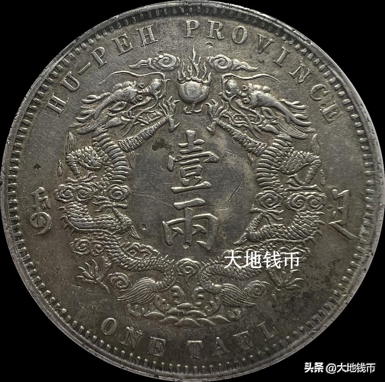这枚湖北双龙一两是中国最早在币面上铭文“大清银币”的银币,也是流通币中,除了吉林“厂平一两”外唯一的“两”制币。