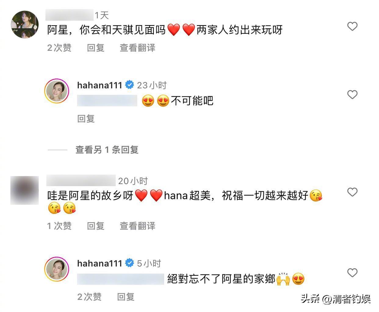 有网友就问她:“阿星,你会和天骐见面吗?两家人约出来玩呀。”