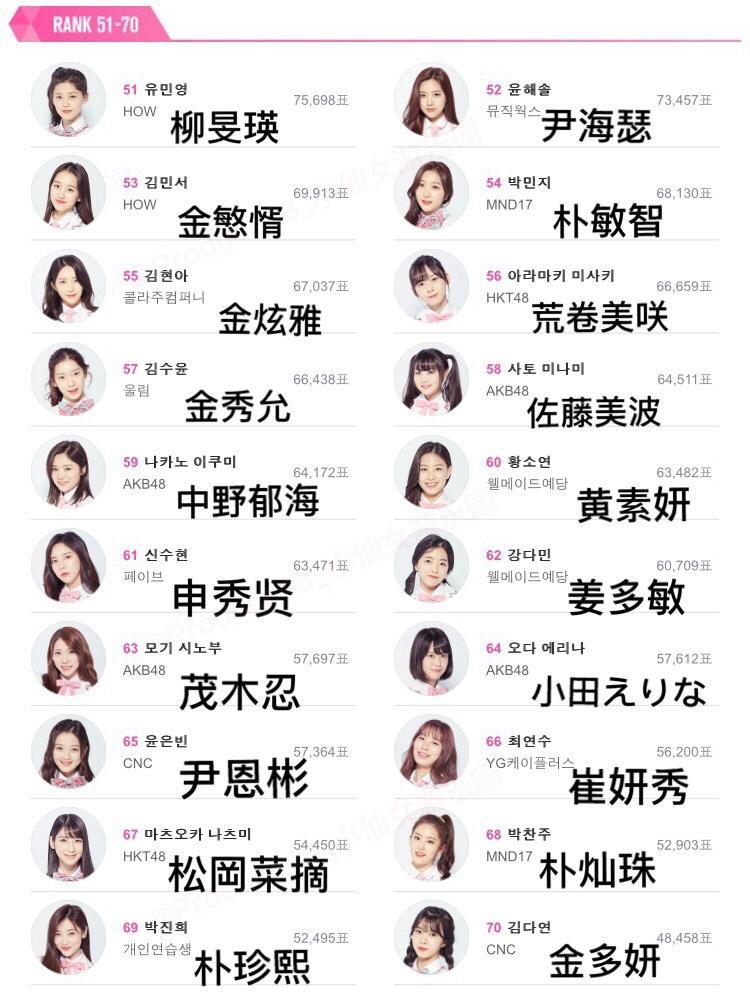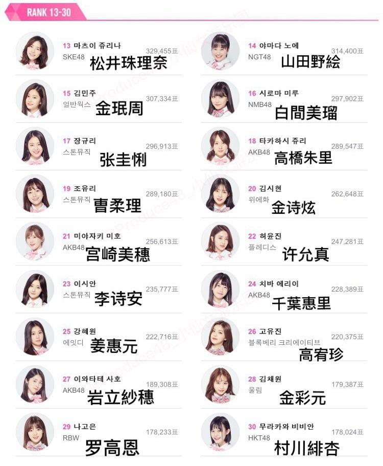 Produce48排名:李佳恩第一 宫脇咲良跌出前三
