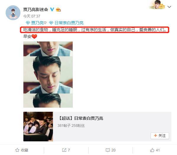 还为此配文称:“吃清洁的食物,睡充足的睡眠,过有序的生活,做真实的自己,爱良善的人们。”疑似在暗示贾乃亮并未受到离婚传闻的影响,依然可以睡好觉,也已经回归到家庭生活中,吃上清洁的食物,生活也依然如往常一样,过得有条不紊井然有序的。也希望贾乃亮和李小璐能真的如此,祝福他们!