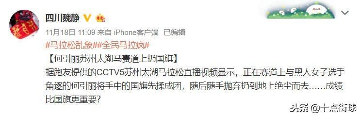 其中第二次志愿者递国旗,何引丽在奔跑中扔掉了国旗,而这也是整个事件在互联网上掀起高潮的关键点,同为运动员的“四川魏静”甚至直接抨击道:何引丽将手中的国旗揉成团,随手扔掉绝尘而去,难道成绩就比国旗还重要了?