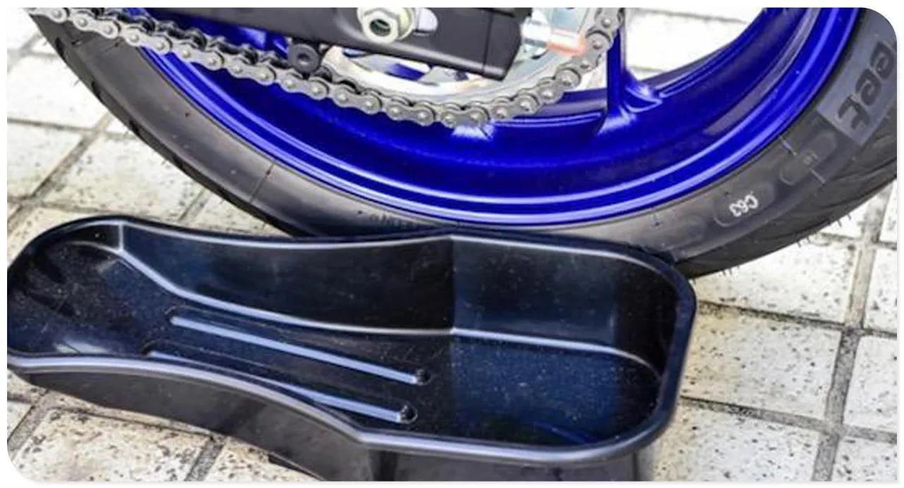 在开始清洁前,切记一定要在链条下方准备一个接油盆。不要让油性的链条脏污直接与地面接触,造成环境的污染。