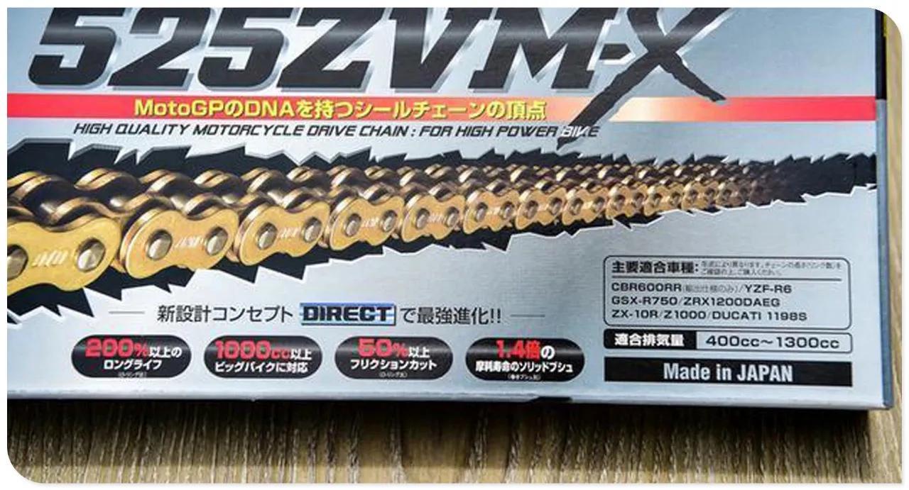 首先要注意的是规格,先搞清楚自己的车是 428、520、525、530 然后再来决定选用链条的等级链条原厂都会标明各链条适合的排量等级。以 DID 为例, 其实很好选择。一般常使用的油封链条有两个等级,ZVM-X 和 VX (VX2) 全部都配顶级的 X-ring。