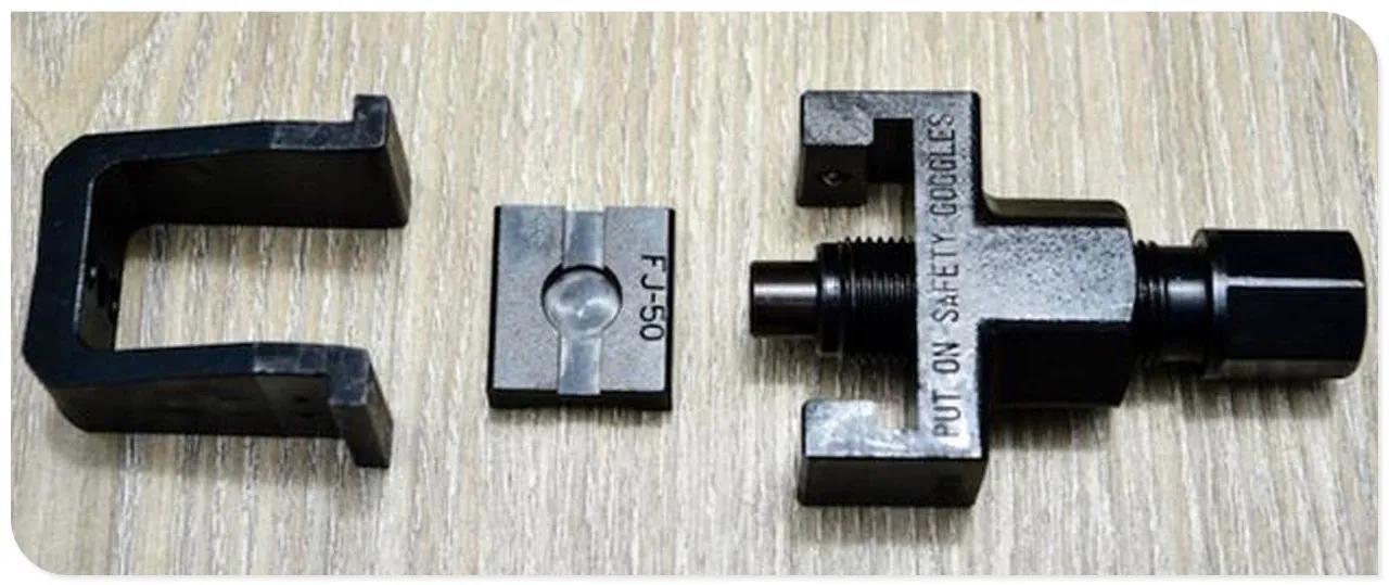 比较高阶的油封链条,链条除了前面提到利用弹片连接的方式固定,针对大排量车种的高扭力输出,都采用卯接的方式。卯接需要有链条安装工具才能达成,需要将卡扣膨胀到位,才可达到最佳使用强度。