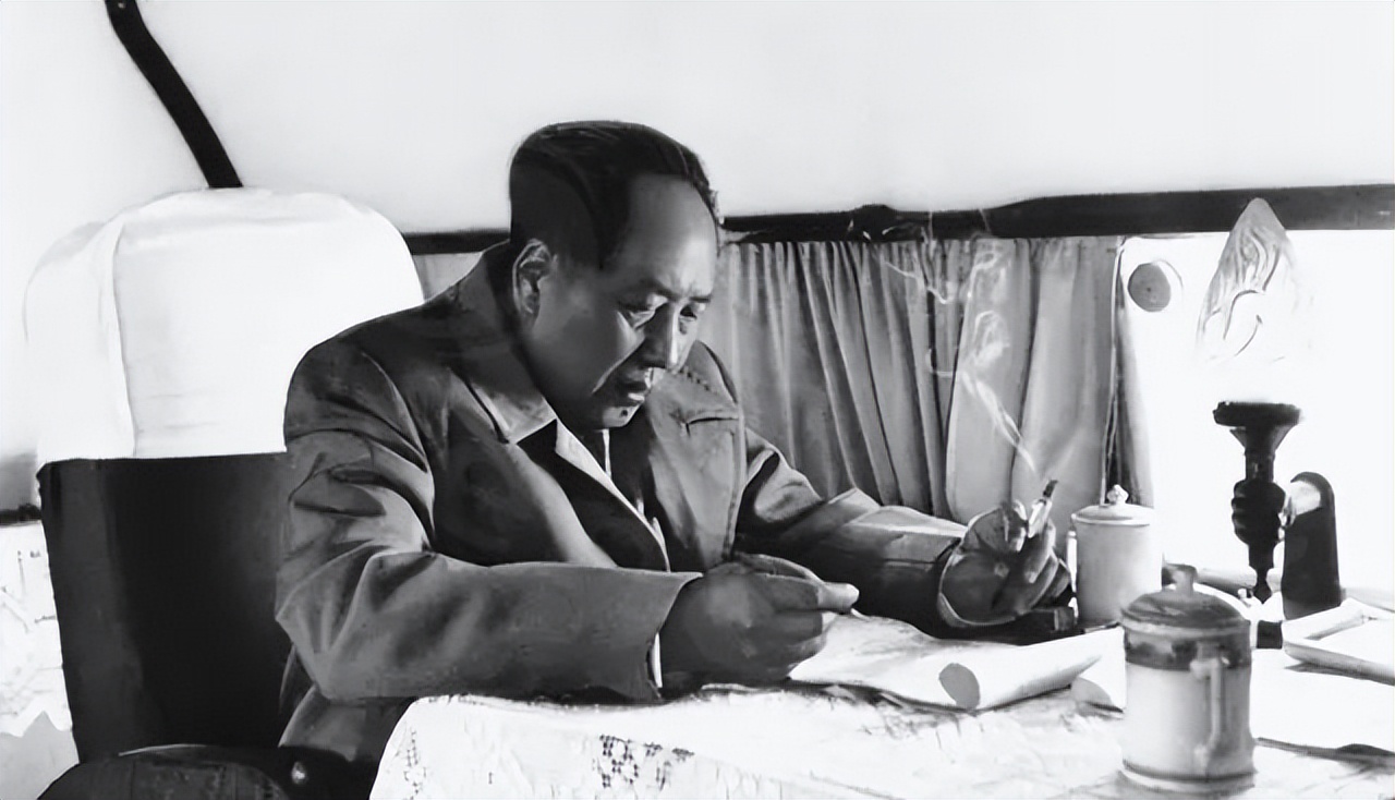 突然,天空下起了蒙蒙细雨。主席看到后,面色沉重地放下了手中的工作。