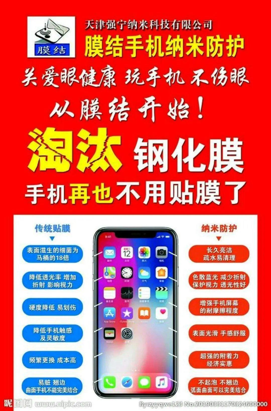 膜结手机纳米防护,手机原屏就是载体,我们采用一种新型纳米材料作用到手机屏幕表面,来提升它的耐摩擦程度,提升它的透光率,提升它的易清洁能力,提升他的护眼程度,在保护手机屏幕的同时更重要的是保护你的眼睛,双重防护!