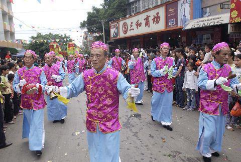 八音是古镇安铺的一种古老艺术,已有80年的历史。“八音”是中国古代乐器的统称。安铺音乐爱好者李元明秀才对古代“八音”整改创新,采用本地特色的民族乐器:手铃、小扣锣、小钱、木鱼、清磐、煞板、小鼓各1个,横萧、洞萧、大筒各一支,高胡、二弦、三弦、沉胡、琵琶各1架,椰胡、月琴、秦琴各2架,共21件,以当地传统的民间音乐曲调《报春来》、《小桃红》、《浪淘沙》等为协奏曲。“八音”队由21人组成,上街游行时,每人手执乐器1件,列队而行。人人身穿长衫马褂,衣冠楚楚。操音响者行在前,弄萧琴者随于后。各种乐器均缀上五彩带、丝带、绒球,五彩缤纷,蔚为壮观。行进间,姗姗举步,徐徐而行,音韵飘逸,萦回长空。街道两旁,观者如堵,男女老少,欢欣鼓舞。每年元宵佳节及端午龙舟竞渡之时,“八音”队均出队演奏,深受广大群众欢迎。