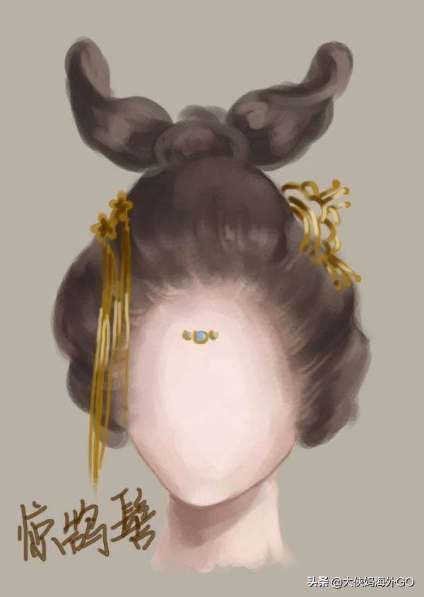 反绾式之一。其梳编法是将发拢上反绾,成惊鸟双翼欲展之势,生动而有趣。据〈中华古今注〉记载:魏宫人好画长眉,令作蛾眉惊鹄髻。