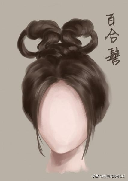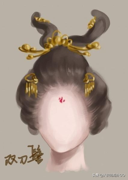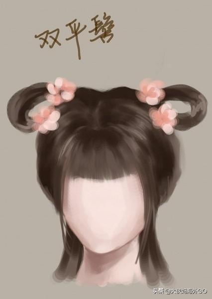 是双挂式中最常见之发式,其梳编法是将发平分两侧,再梳结成髻,置于头顶两侧。前额外负担多饰有垂发,俗称刘海,一般多用于侍婢丫环。