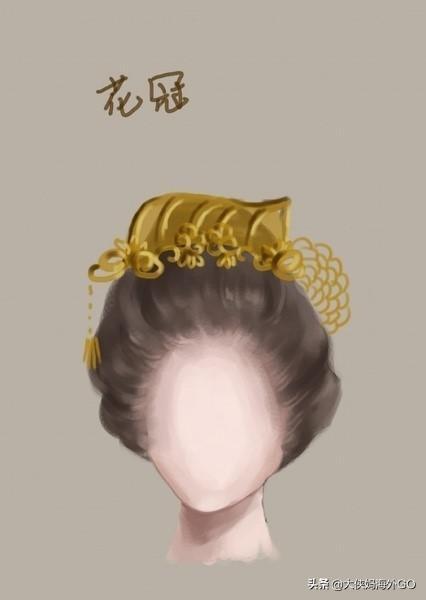 冠小仅束髻,冠上多有花饰,在明代仕女多好用。
