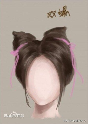 儿童或未婚少女之发式,其梳编法是将发平分两股,对称系结成两大椎,分置于头顶两侧,并在髻中引出一小绺头发。使其自然垂下。