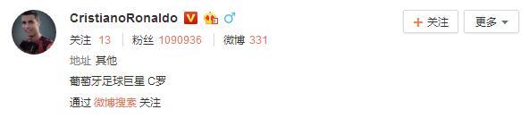 C罗在今年早些时候开通了微博,至今为止,已经拥有60多万的粉丝,而C罗关注的微博账号只有7个。除了鹿晗外,C罗微博关注的其他6个账号均为公司账号,而鹿晗则是C罗关注的首个中国明星。