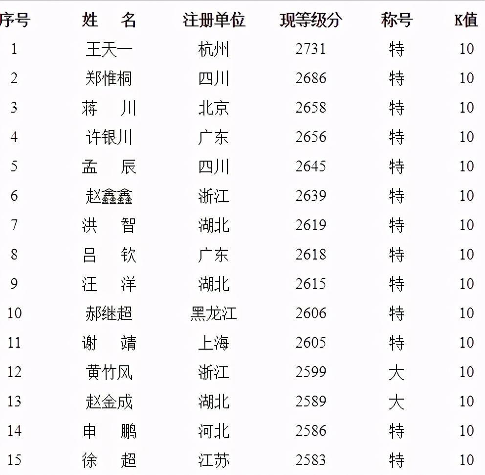 如2019年,蜀山少侠郑惟桐,等级分一度在2700线以上,暗分最高的时候,和王天一仅差十几分,十几分,也就是几盘棋的事,这一度令王天一如坐针毡‘中象第一人’之位,似乎有‘易主’之危。