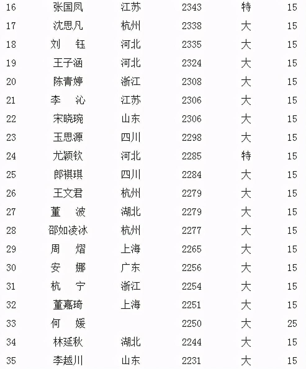 作为女子棋坛的‘大姐大’王琳娜,等级分最高时达到2500分,曾获得过女子世界冠军、亚洲冠军、全国冠军等等,成就非凡,但是,作为80年代出生的她,如今已过了棋艺的巅峰期,目前虽然排名第二,但不会对超级丹的构成威胁。