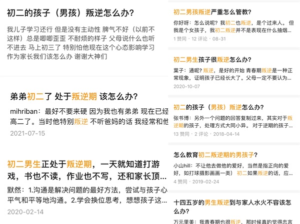 初二男孩叛逆的情况非常普遍,随便一搜就有一大堆求助,你不是一个人在战斗。