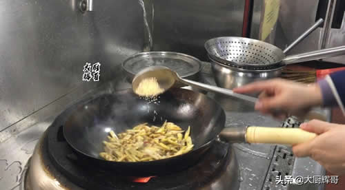 7、放入少许盐、味精、鸡精、白糖和胡椒粉调味,开大火翻炒几下。少量的白糖可以提鲜,胡椒粉可以去异增香。