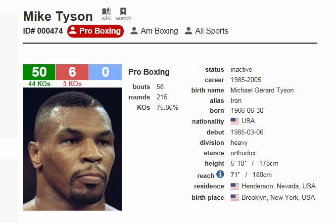 而拳王泰森身高178,由于在重量级他的身高算矮的,所以决定了他只能采取进攻式的打法,靠他灵活的步伐,靠他快速的摇闪,钻进去贴身击打对手。
