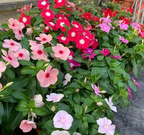 长春花是一年四季都能开花的,但是在夏季开花量更大,只要水肥和光照充足,特别容易养爆盆,适合庭院和阳台养殖观赏。
