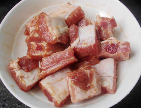 制作过程:第一步,首先准备适量的排骨,将其剁成块,然后放入清水中浸泡,差不多1个小时,过程中需要换掉浸泡出的血水,保持水的干净,待将其浸泡好后,仔细冲洗干净,控干水分;