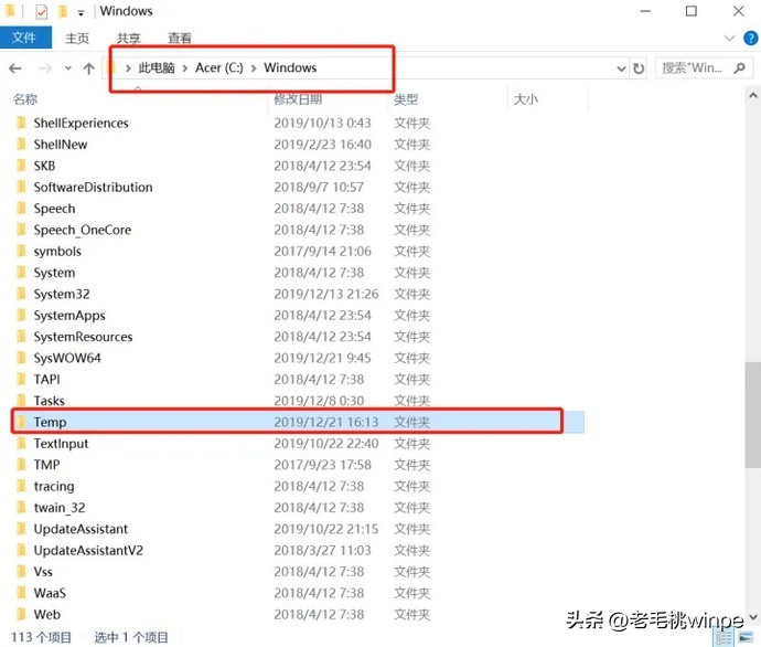 我们只需要打开资源管理器,在C盘windows文件夹下,找到temp这个文件夹,删除该文件夹里面的内容就可以了。
