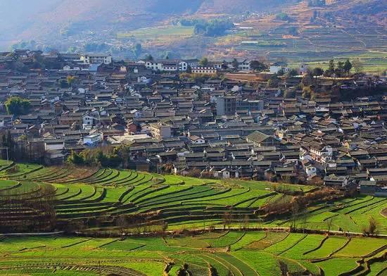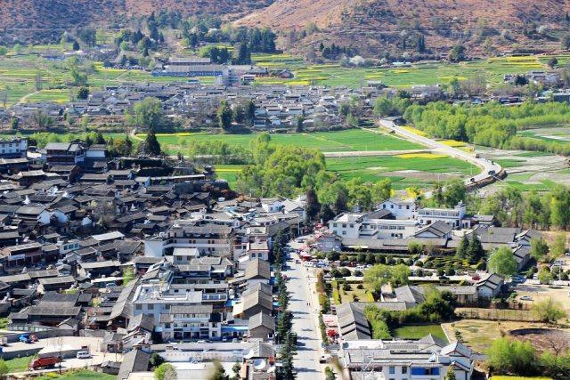 登上山顶,即能看到长江第一湾的全景,还有石鼓镇的全景。