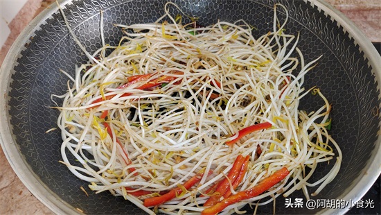 同时还要记住,绿豆芽洗干净后一定要将水分沥干,待水下锅后,锅中升温慢,同样绿豆芽会出水严重。
