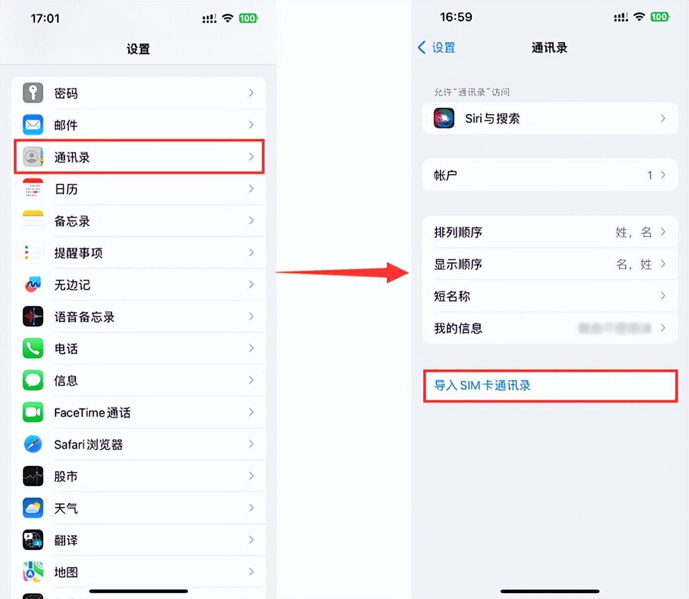 第1步:将SIM卡插入新手机,然后打开新手机的【设置】,下拉找到并点击【通讯录】选项,然后单击【导入SIM卡通讯录】,等待导入过程完成。