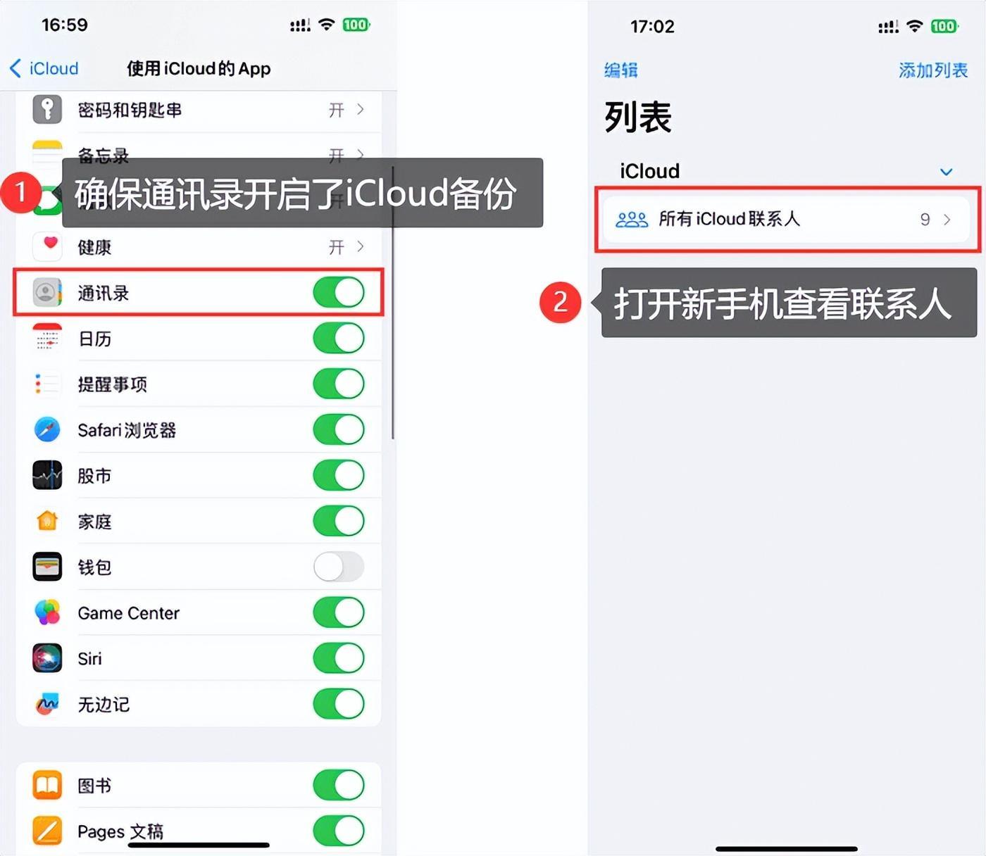 第1步:首先确保旧手机中的【通讯录】软件已经开启了iCloud备份。