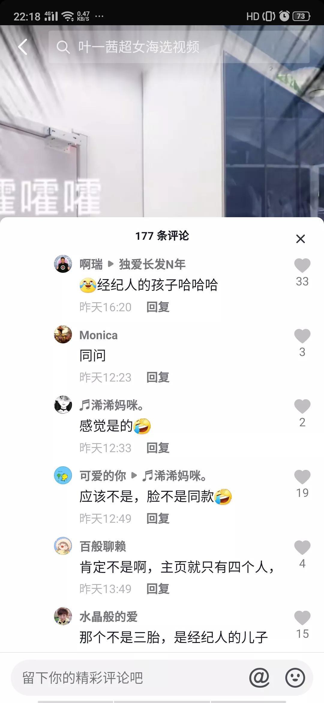 对于田亮视频中小男孩小编认为是他们三胎的可能性不大,众所周知田亮一家如同复制粘贴的共用一张脸但小家伙可是全然未遗传他们家的基因,长相不似田亮叶一茜夫妇,和森碟小亮仔也不像,而且就小男孩的年龄来说,近两三年叶一茜虽没有新的影视作品但频频出现在大众视野中直播带货,也没见过她有怀孕的迹象。更有网友指出这是经纪人的孩子。