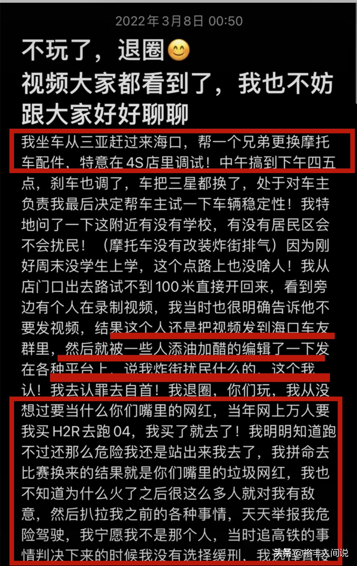 知名机车网红文博二次入狱,因无证驾驶被拘捕,本人发声明退圈