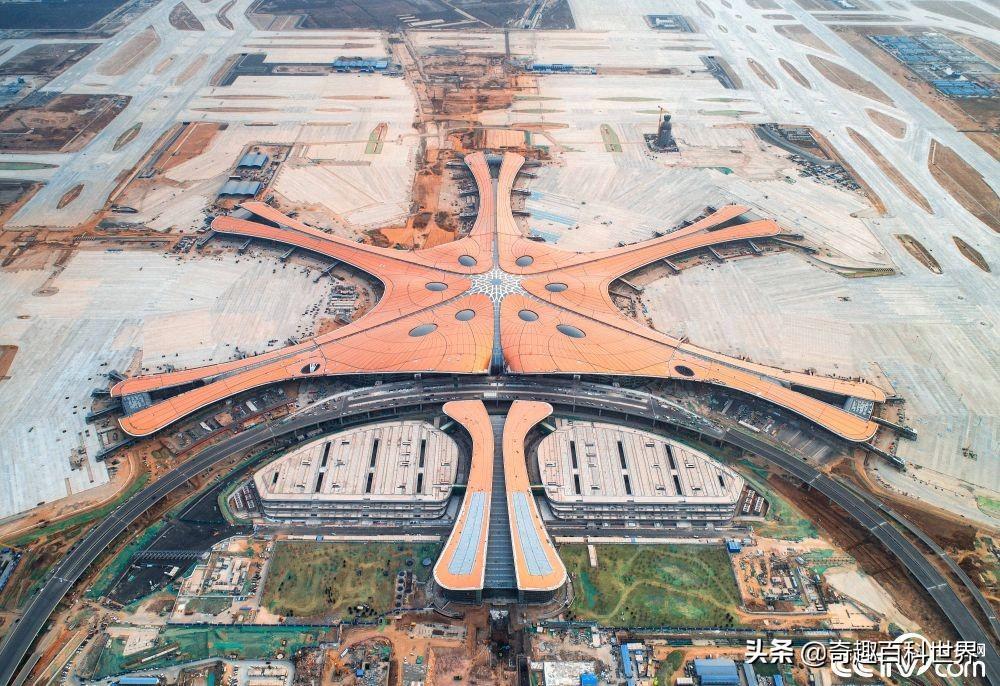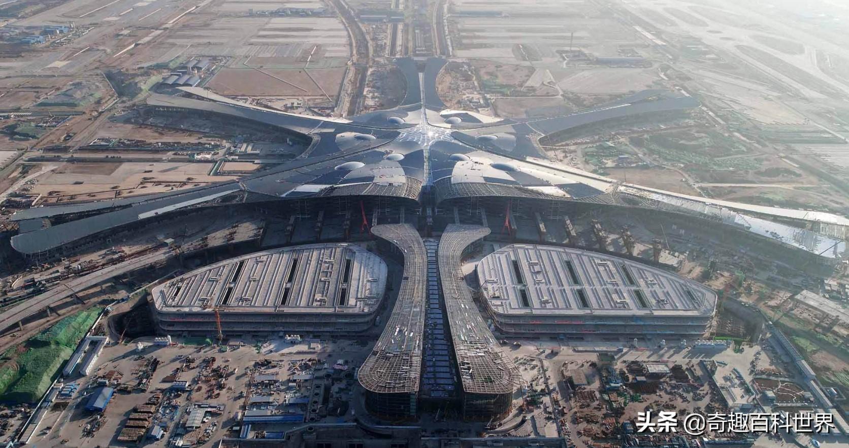北京大兴国际机场航站楼综合体建筑140万平方米,可停靠飞机的指廊展开长度超过4000米。