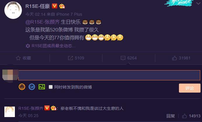 任豪特意为张颜齐发了第520条微博,这个细节很贴心呀。