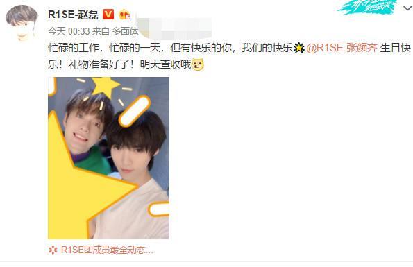 焉栩嘉发了一句话祝福张颜齐生日,两人也的互动也很甜哦。