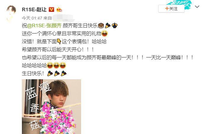 赵让小哥哥发了表情包祝福张颜齐生日快乐。
