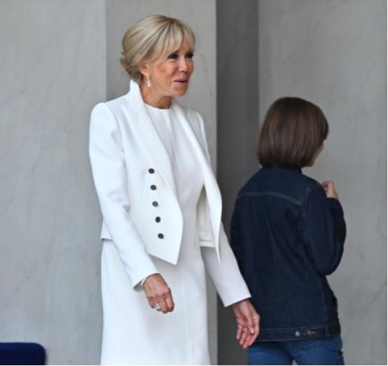布丽吉特45岁大女儿,一身白色造型输给妈,秒懂马克龙的爱之深