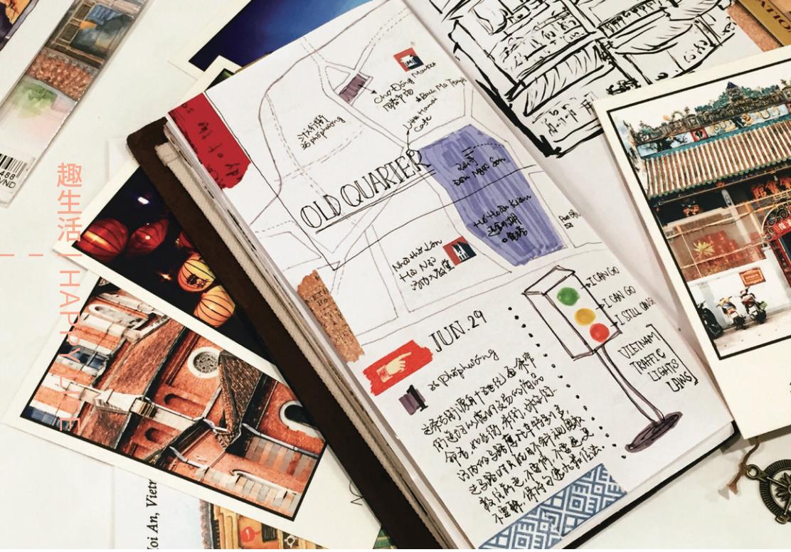 旅行手帐其实就是旅行时用来记下回忆的笔记本,它可以是任何你喜欢的笔记本:空白、条纹、或是让你方便规划行程的周记本。Susie说:“旅行手帐所能涵盖的东西包括却远远不止于我们旅行后的所思所想,所见所闻。它可以更生动,记录更多有趣的事情。”