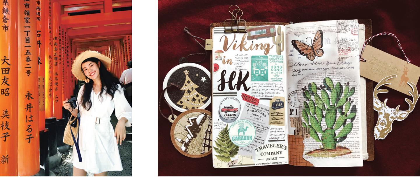 但是Susie对素材的选择也很挑剔,不会用跟自己风格不符的元素。她自认为自己的旅行手帐是属于明亮复古风,有的时候也带有一些自然系复古的感觉。