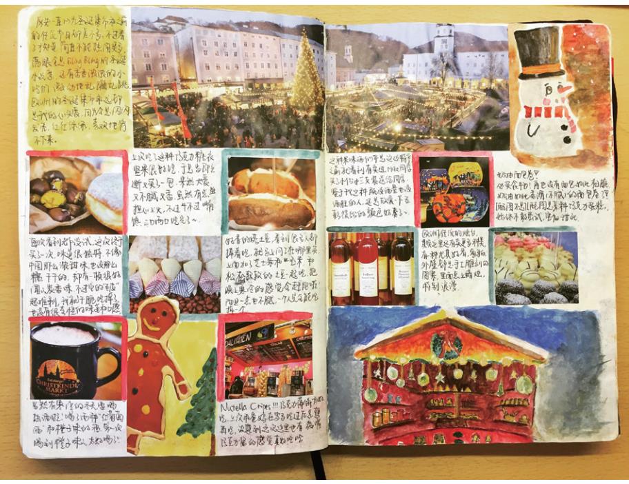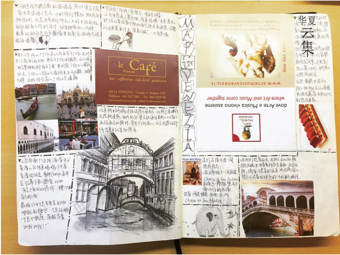 Susie一直认为,手帐是生活的一个载体。Susie最初产生做手帐的想法,是在大学期间的一次欧洲旅行。她一路上收集了很多宣传单和地图,回来后就想用一个本子把它们整理好,还配上了自己画的小插画,它成为了Susie第一本有些手帐形式的旅行日志,之后她又在网上接触到了日本的journal(即手帐),发现其实旅行日志中记录的不仅限于速写,题材也不限于旅行,于是慢慢形成了现在她的社交平台上呈现的各种不同形式的手帐。但手绘和速写仍然是Susie手帐中最常出现的部分。