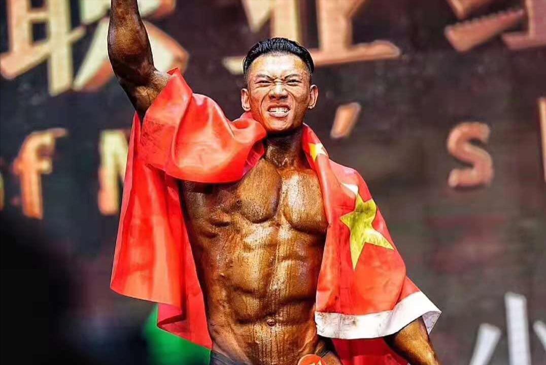 那一刻,他自豪地将国旗披挂在身,就像一面高高飘扬的胜利旗帜,昭示着中国健美界日新月异的成就和骄人地位。