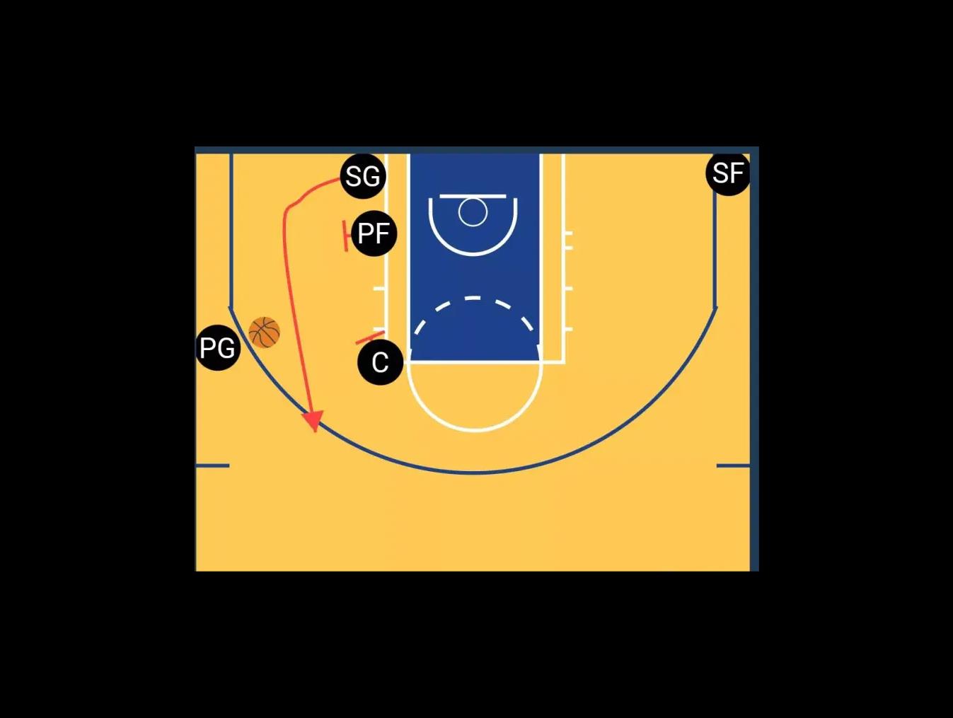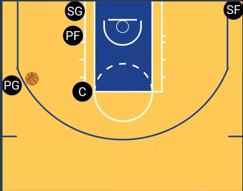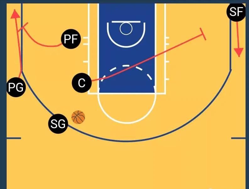 基础站位:拉希德华莱士与大本为汉密尔顿挡拆,汉密尔顿无球跑到左侧45度角三分线。