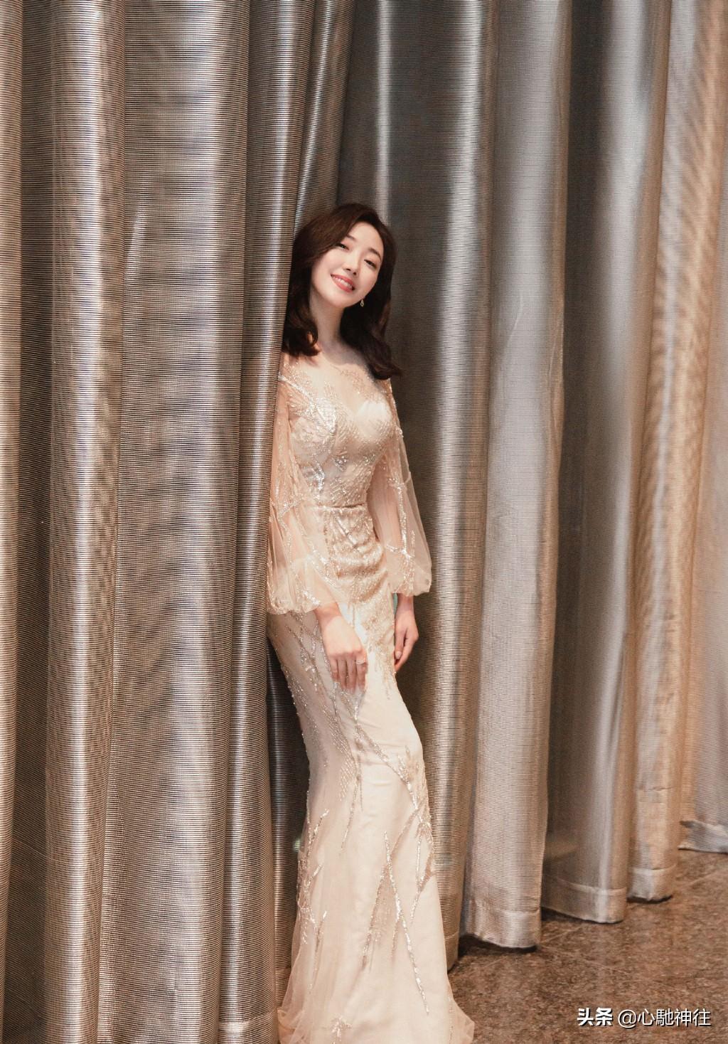 身穿礼服裙的菅纫姿,举手投足间都透着一股高贵的气息。