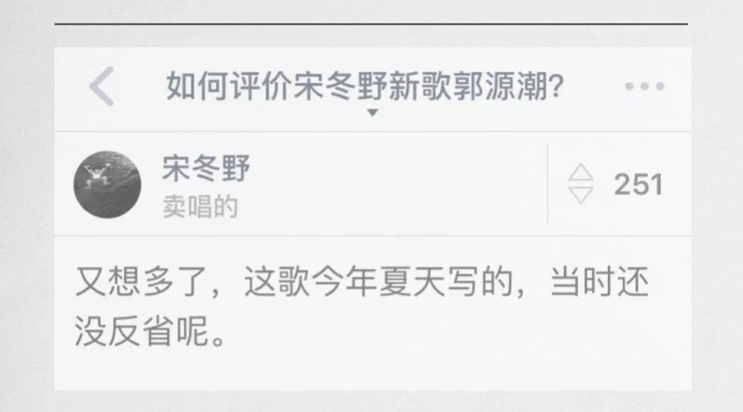 事发之木和东窗之麻:这句话其实出自万晓利的《陀螺》里的歌词:在东窗事发的麻木里转。并不是指宋冬野因为吸大麻东窗事发。