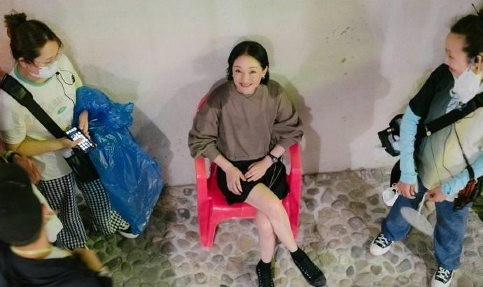 坐在椅子上展露出一双白皙纤细的长腿,对着镜头露出灿烂的笑容。身旁的工作人员也让人感受到这位女演员平易近人的魅力。在旅行中的周迅总是保持着开朗的心情,