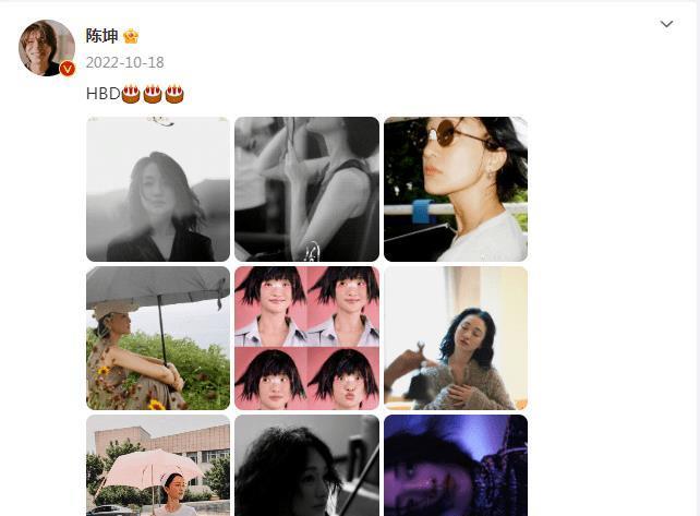 10月18日,中国女演员周迅迎来了她的49岁生日。作为她的“头号粉丝”,陈坤在当天零点零分准时在个人社交媒体上晒出了一组周迅的美照,