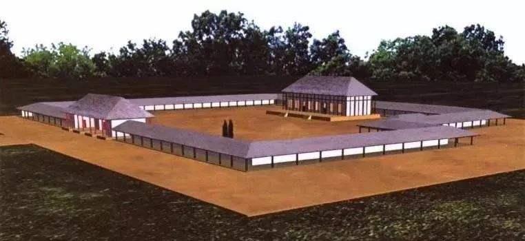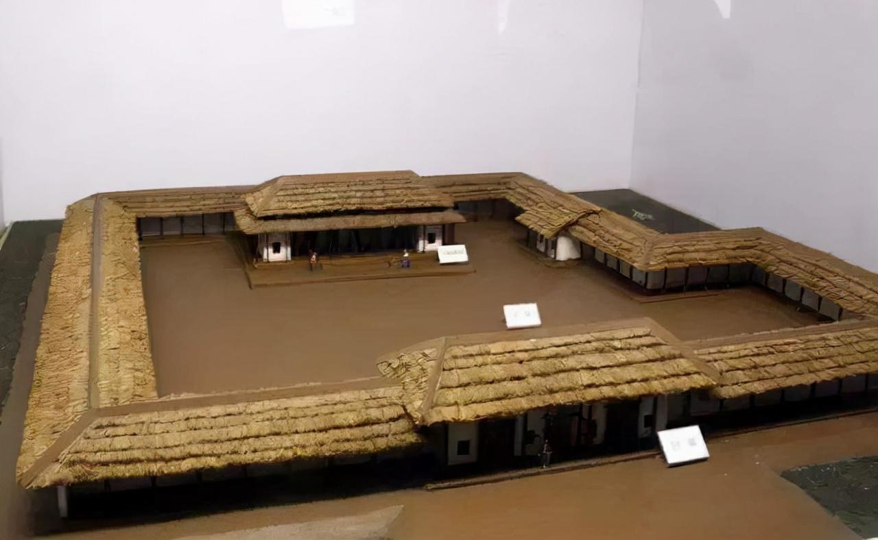 在二里头遗址的宫殿建筑群中,属一号宫殿的规模最为壮观。它以面积将近10000平方米的夯土台基为底座,底座高出当时的地表的高度是800毫米。宫殿的四周围有高耸的围墙,围墙的内外建有回廊结构。宫殿的大门开在南墙中部,有三个门道和四个门塾组成。主体的殿堂的南面是一个广阔的庭院,面积达到了5600平方米,踢一场足球比赛估计都没有问题。殿堂的四周也有一些回廊。
