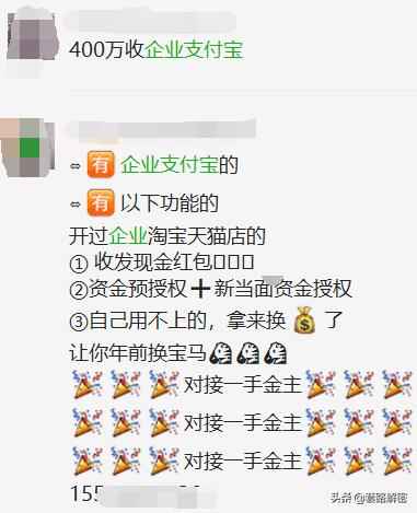 2020年初,在各微信群,QQ群,贴吧等总见到有一群人在疯狂在收购企业支付宝帐号,价格有几万,几十万,甚至上百万,为了打消卖家的担心,还承诺可以当百交易,办理过户等相关手续,好像只要你想卖,其他的都不是问题。看了很多收购信息,收购者都有一个共同的要求:必须有收发现金红包功能!一个正常的支付宝企业版功能为何如此值钱呢?