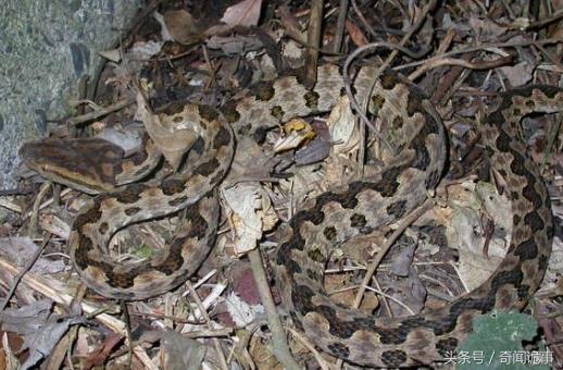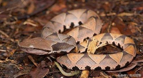 第8名,原矛头蝮蛇,两鼻间鳞较小,隔有数片更小的鳞片左右两眼上鳞之间一横排上有小鳞14--16片鼻鳞与颊窝鳞前缘之间有1--数片小鳞体长1米左右体背颜色棕褐在背部中线两侧有并列的暗褐色斑纹左右相连成链状腹部灰褐色有多数斑点。