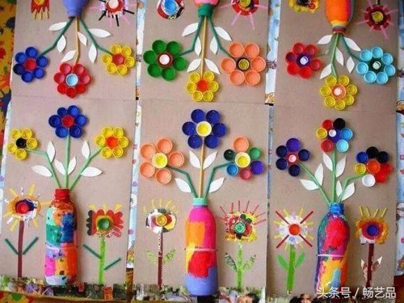 利用塑料瓶盖和塑料瓶DIY立体花画作