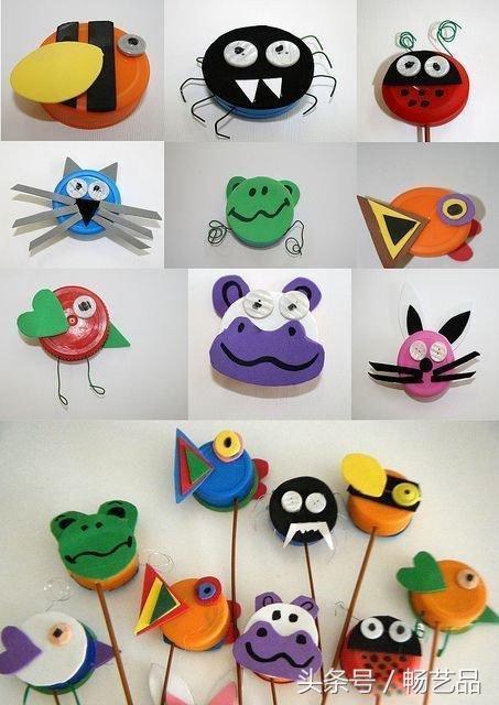 利用瓶盖DIY各种小动物,孩子的创意是无穷的!
